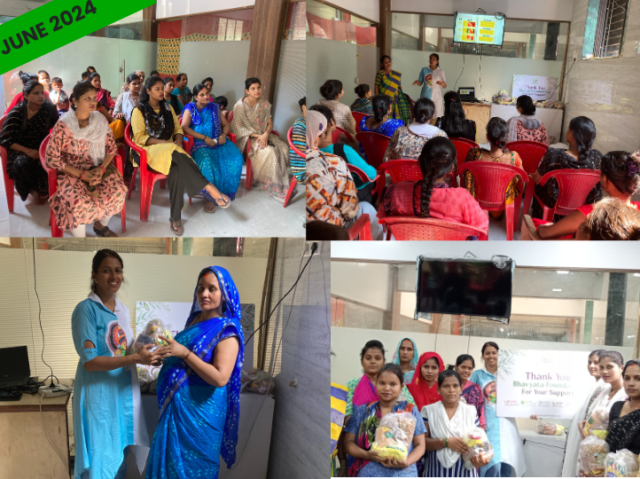 32 expectant women supported with nutritional pregnancy kits till date. An introductory session on the importance of Garbh Sanskar was held. Follow-up of counselling sessions is conducted monthly for their well-being. The kit consists of pulses, grains, spices, oil, and dry fruits.