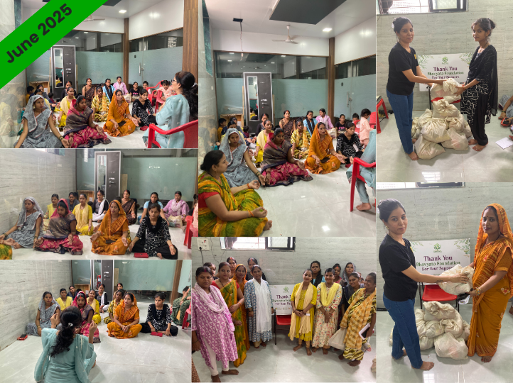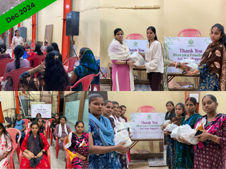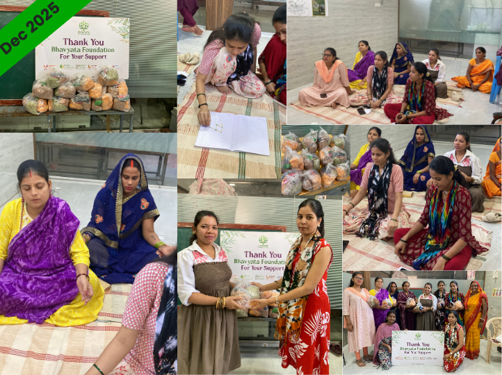 We distributed 50 Pregnancy kits to expectant mothers in the slums of Mumbai. An introductory session on the importance of Garbh Sanskar was held. Follow-up of counselling sessions is conducted monthly for their well-being. The kit consists of pulses, grains, spices, oil, and dry fruits.