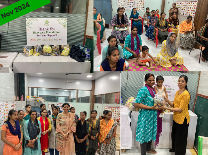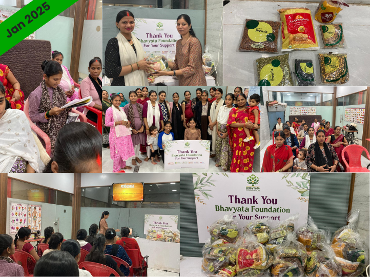 245 expectant women supported with nutritional pregnancy kits till date. An introductory session on the importance of Garbh Sanskar was held. Follow-up of counselling sessions is conducted monthly for their well-being. The kit consists of pulses, grains, spices, oil, and dry fruits.
